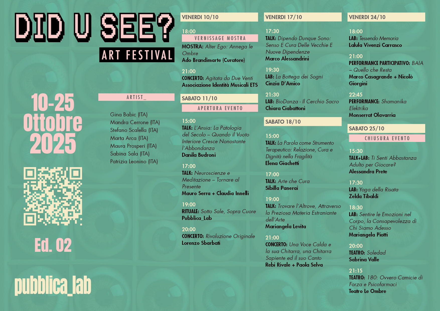 Oltre 20 appuntamenti tra mostre, performance, talk, concerti e laboratori danno forma alla seconda edizione di Did You See?, il festival multidisciplinare di Pubblica_Lab.