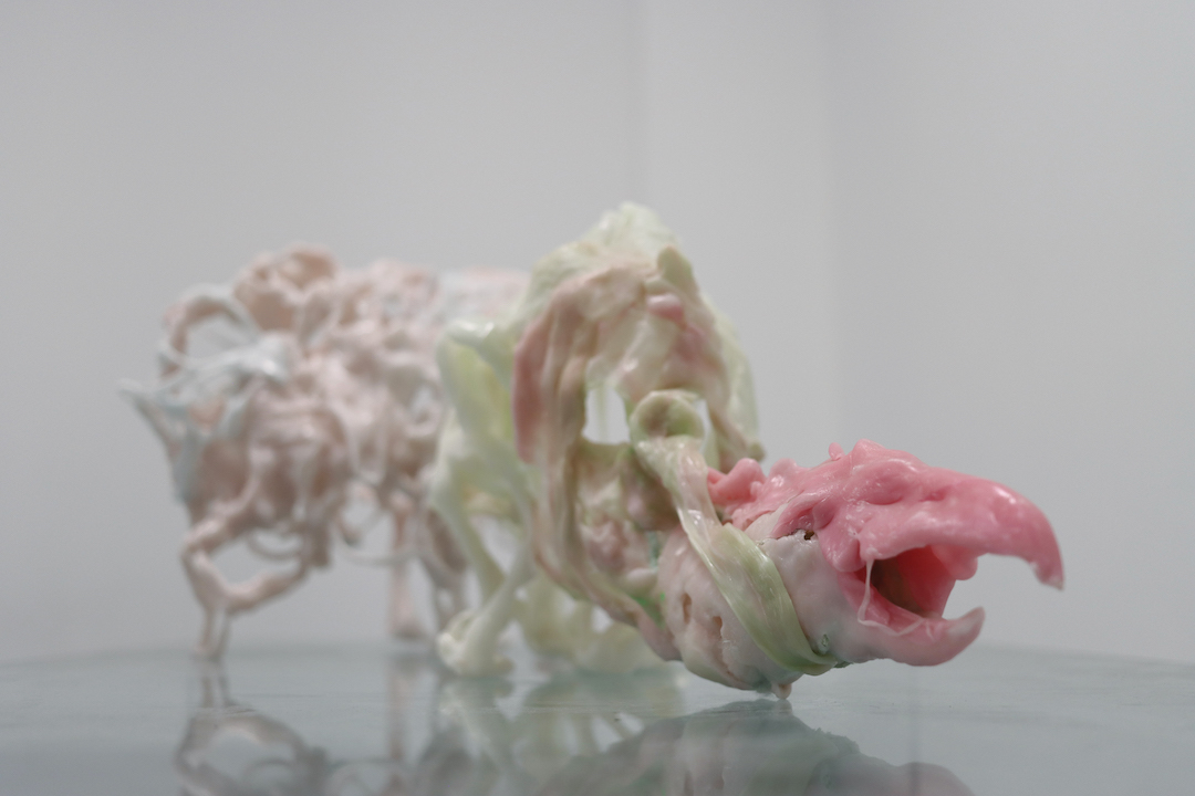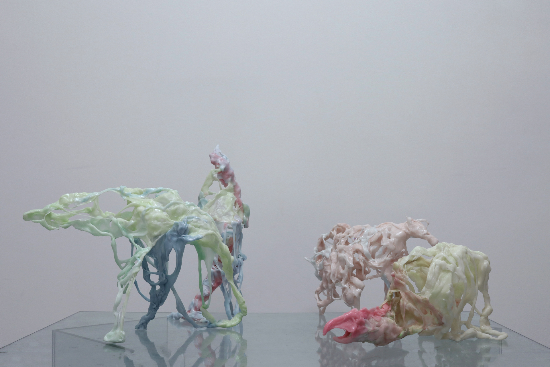 Questi lavori, che giocano sul limite tra reale e subconscio, in una metamorfosi continua tra spazio e forma, dialogano con la serie Intravisioni – Intrusione Visionaria nel Reale, trovando un ulteriore compimento, un esito. Qui, il sottosopra trova sfogo nella dimensione terrestre: immagini oniriche sono legate indissolubilmente alla percezione umana. Non esiste possibilità di sottrazione da quel mondo; la dimensione extravisiva è ormai coesistente a quella dell’ordine naturale. Tutto è “infettato”: fecondo ultraterreno insidiato nei tessuti vegetali, animali e umani. La realtà ne è invasa.
