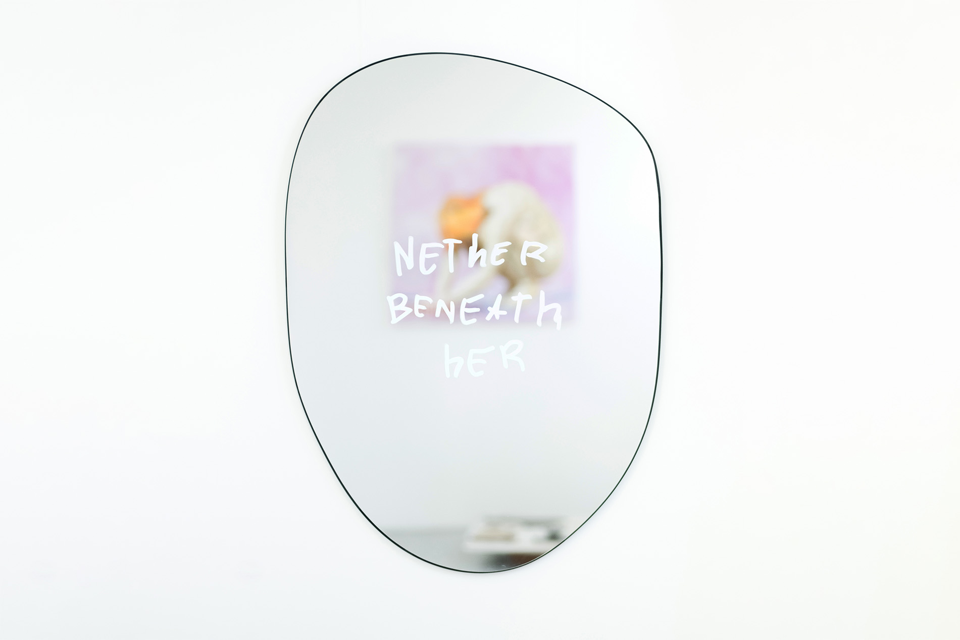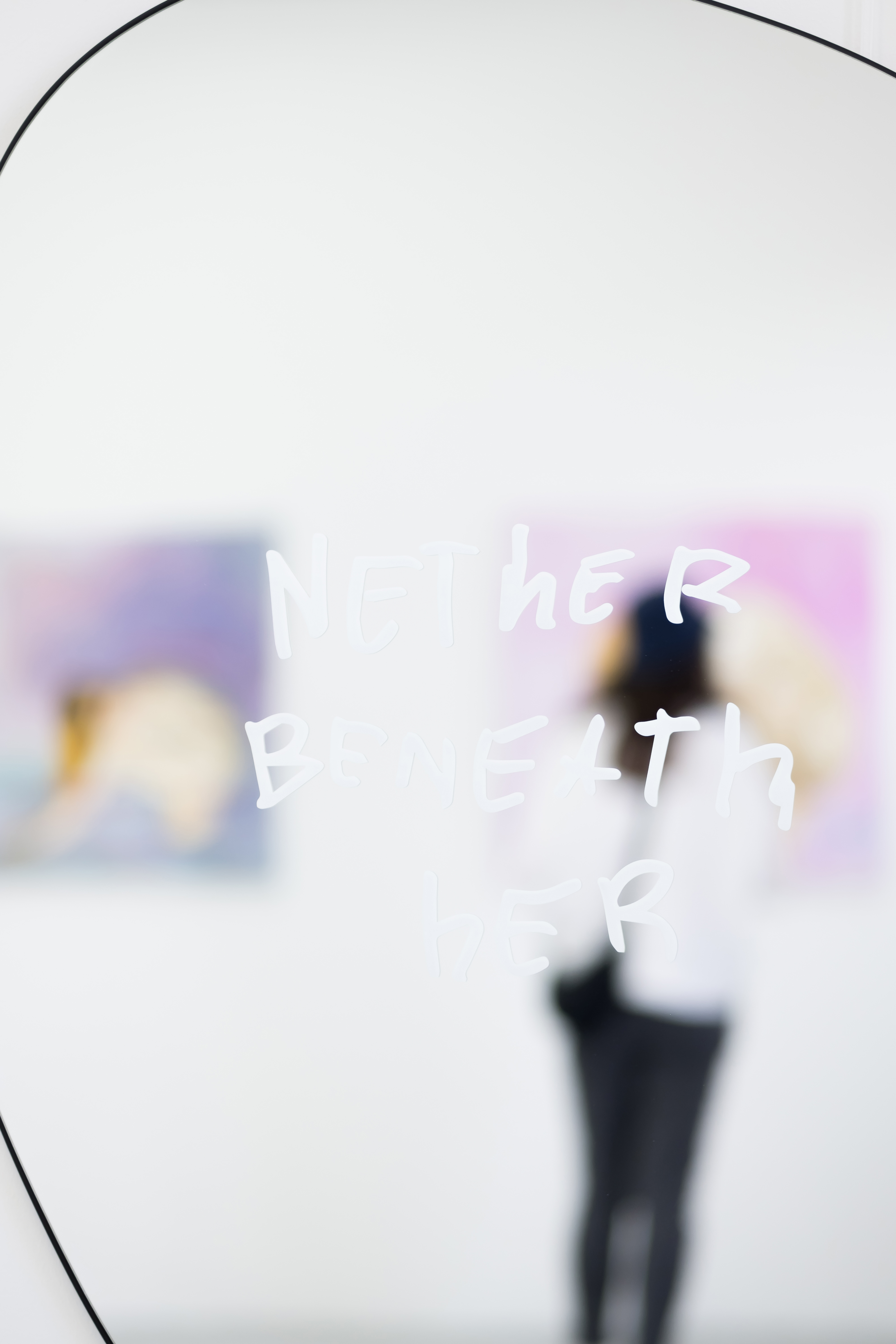 “Never Beneath Her” è un potente e provocatorio esempio di aRtivismo femminista. Quest’opera fa parte della serie “L’Abecedario della Donna Libera”, in cui Aliteia esplora l’alfabeto delle donne vittime di violenza psicologica perpetrata dal patriarcato. Ogni lettera dell’alfabeto rappresenta una parola o una frase correlata alla violenza subita. La scelta dell’utilizzo dello specchio come supporto per il testo ha una profonda simbologia: riflette non solo l’immagine fisica dell’osservatore, ma anche la società e le sue dinamiche, mettendo in luce il ruolo della donna nella società patriarcale. Attraverso l’uso della disgrafia, l’artista esprime il disagio, la rabbia e la determinazione delle donne nel resistere e nell’affrontare il patriarcato: una chiamata all’azione per la creazione di un mondo più equo e giusto per tutte le donne.