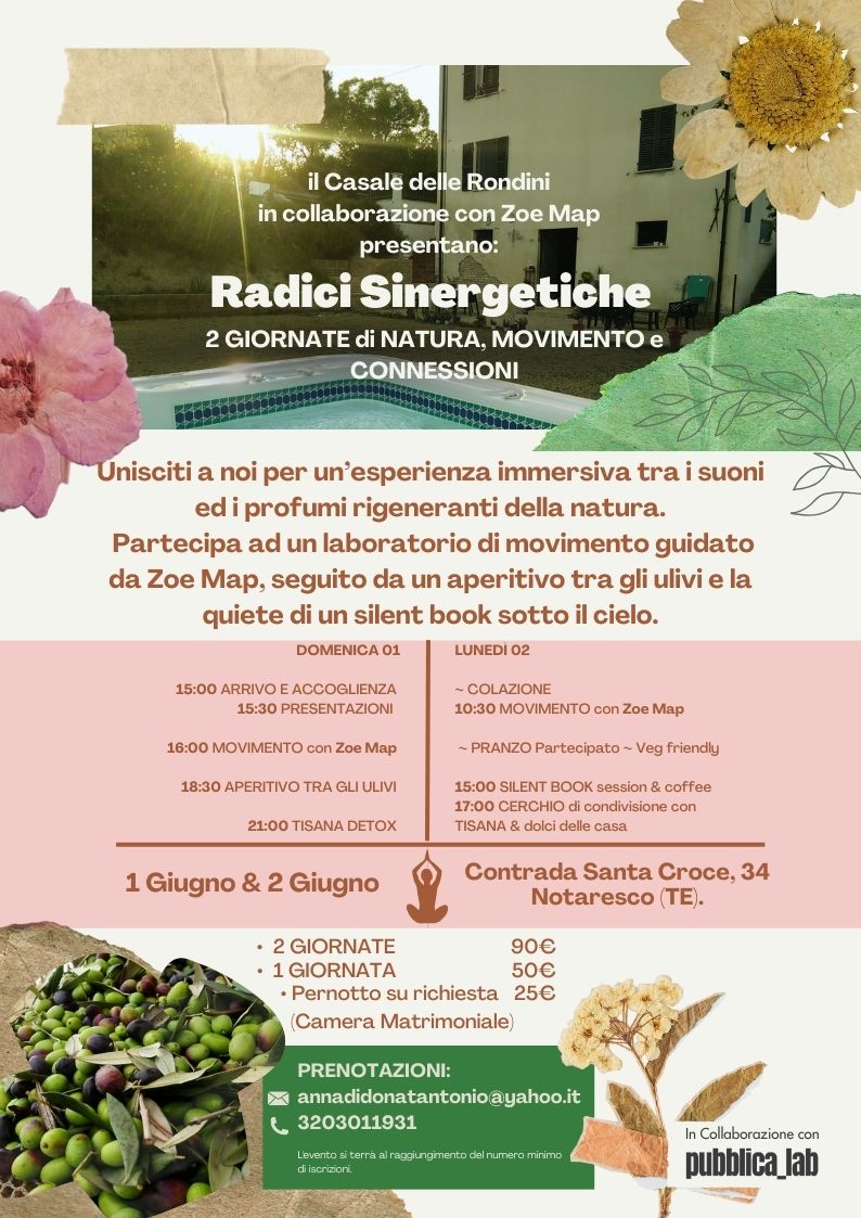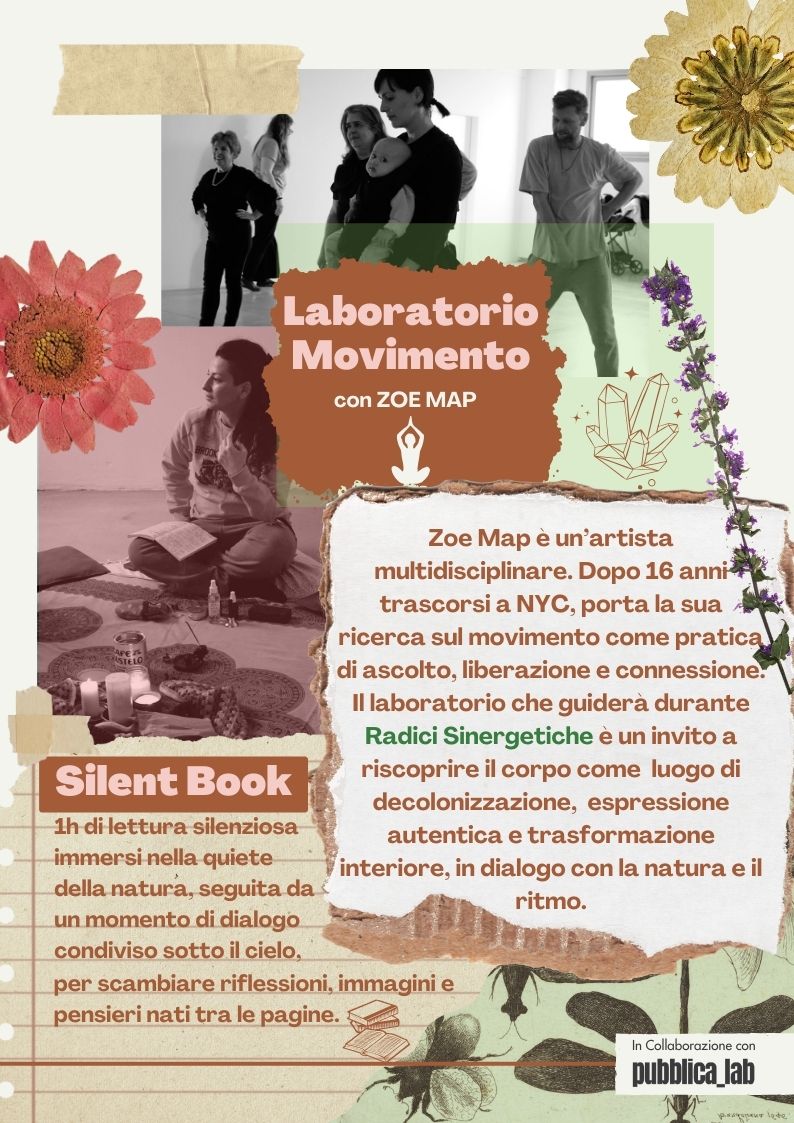 Partecipa ad un laboratorio di movimento guidato da Zoe Map, seguito da un aperitivo tra gli ulivi e la quiete di un silent book sotto il cielo.
